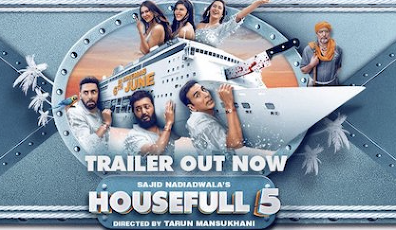 बॉलीवुड की सबसे हिट कॉमेडी फ्रेंचाइजी में से एक हाउसफुल एक बार फिर से दर्शकों को हंसी का फुल डोज देने के लिए तैयार है। ‘हाउसफुल 5’ का ट्रेलर अब सामने आ चुका है और इसे देखकर फैंस की उत्सुकता और भी बढ़ गई है। फिल्म में एक बार फिर से अक्षय कुमार और रितेश देशमुखकी जोड़ी धमाल मचाने को तैयार है। साथ ही इस बार कॉमेडी का तड़का लगाने के लिए कई नए चेहरे भी नजर आने वाले हैं। फिल्म में अक्षय कुमार, रितेश देशमुख से लेकर संजय दत्त, जैकलीन फर्नांडिस, नरगिस फाखरी, सोनम बाजवा नजर आ रही हैं।