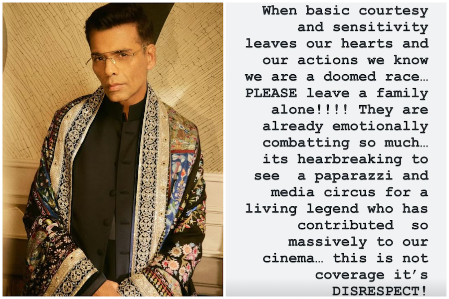 करण ने अपनी इंस्टाग्राम स्टोरी पर कड़े शब्दों में लिखा, “जब बुनियादी शिष्टाचार और संवेदनशीलता हमारे दिलों और हमारे कार्यों से चली जाती है,तो हमें पता चलता है कि हम एक बर्बाद जाति हैं। कृपया एक परिवार को अकेला छोड़ दें!!! वे पहले से ही भावनात्मक रूप से बहुत संघर्ष कर रहे हैं... एक जीवित दिग्गज के लिए पपराज़ी और मीडिया का तमाशा देखना दिल दहला देने वाला है, जिसने हमारे सिनेमा में इतना बड़ा योगदान दिया है।यह कवरेज नहीं, अनादर है!” करण का यह बयान इंटरनेट पर तेजी से वायरल हो गया और उनके समर्थन में कई सेलेब्स और फैंस उतर आए।