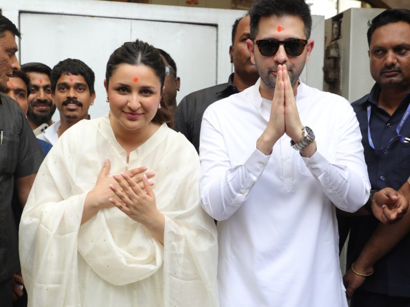 Parineeti Chopra-Raghav Chadha Seek Blessings at Siddhivinayak Te...