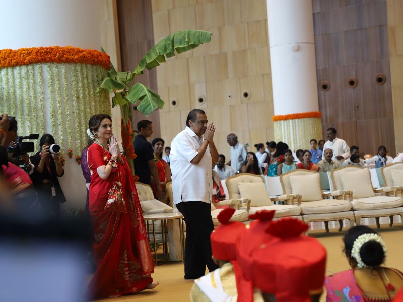 #AkashAmbani with wife #ShlokaAmbani and #IshaAmbani with husband #AnandPiramal arrive together to attend the mass wedding of the underprivileged, organized by the #Ambani family as part of #AnantbhaiAmbani and #RadhikaMerchant’s pre-wedding celebrations 💕✨💫