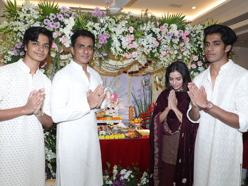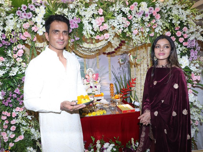 Sonu Sood Snapped Celebrating Ganapati Chaturthi At His Home