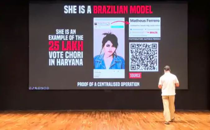 राहुल गांधी की प्रेस कॉन्फ्रेंस में दिखाई गई ब्राजीलियन मॉडल बोली...
